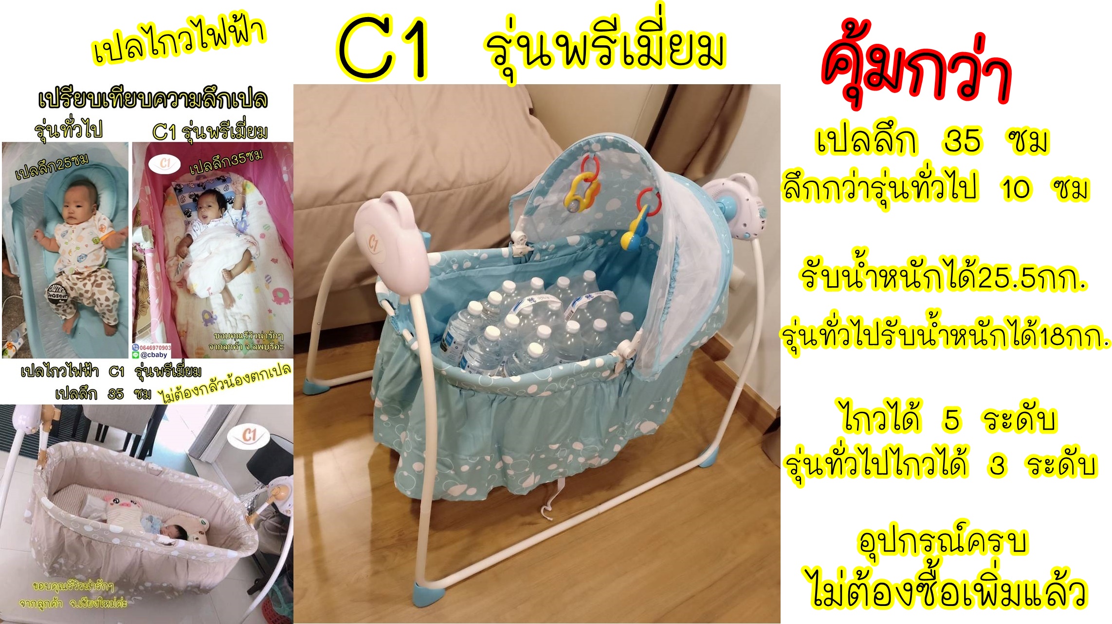เปลไกวไฟฟ้า C1 รุ่นพรีเมี่ยม เปลไกวไฟฟ้าที่แข็งแรงมาก รับน้ำหนักได้ 25.5 กก พิเศษ เปลลึก35ซม ลึกกว่ารุ่นทั่วไป10ซม ทำให้หมดกังวลน้องจะตกเปลได้เลยค่ะ และยังไกวต่อเนื่อง สมู้ท ช่วยให้น้องนอนหลับได้ยาวมากขึ้น พัฒนาเติบโตสมวัย